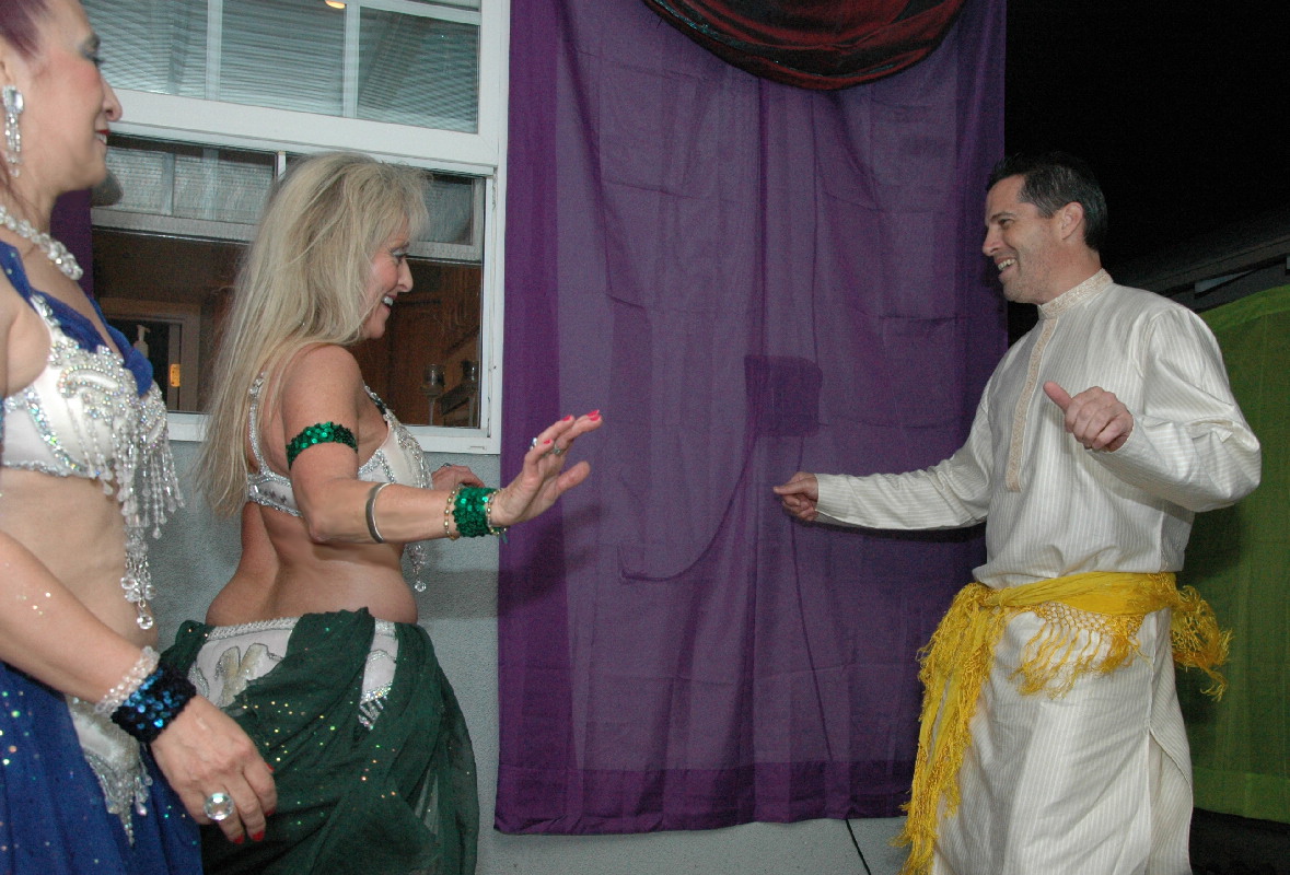 Each year Washington Open Elementary School in Santa Clara auctions off items and packaged events to raise money for the student body programs and sports. The most popular and biggest money maker auctioned each year is a Mediterranean Nights Dinner catered by parents for the lucky winners in their home. Some of the parents and Bahira work to transform the winner's yard or patio into a Middle Eastern Boudoir. Other parents bring selected gourmet dishes to be served by yet other volunteers. The topper for this catered Dinner is an entertaining 30 minute show by Indigenous after the meal. This year, the Dinner auctioned off for $1500. Here are some photos from the event courtesy of Ezekiel Sanborn de Asis.