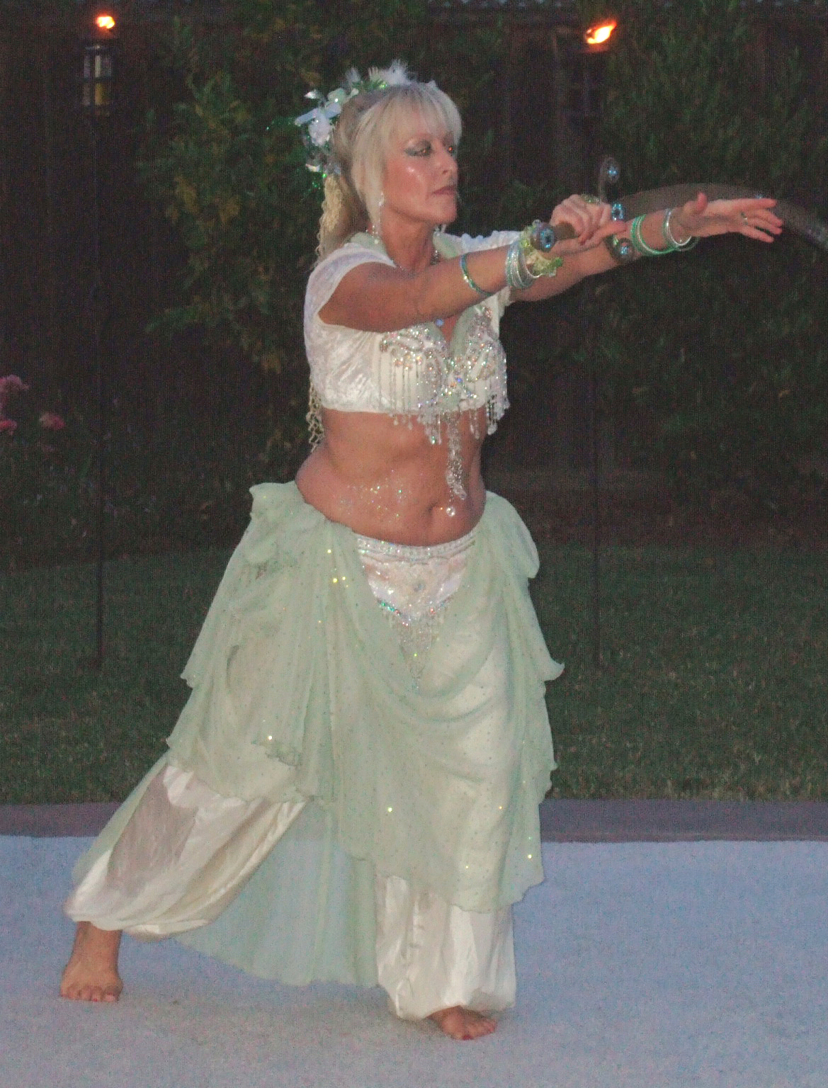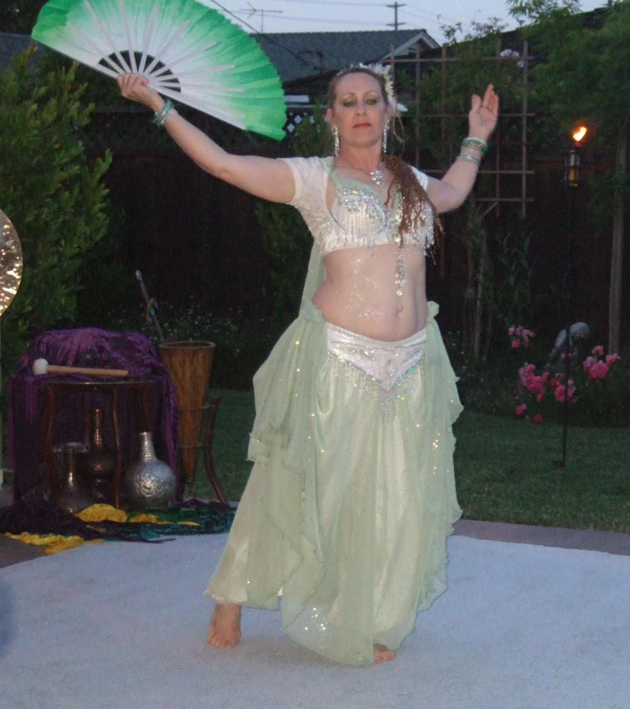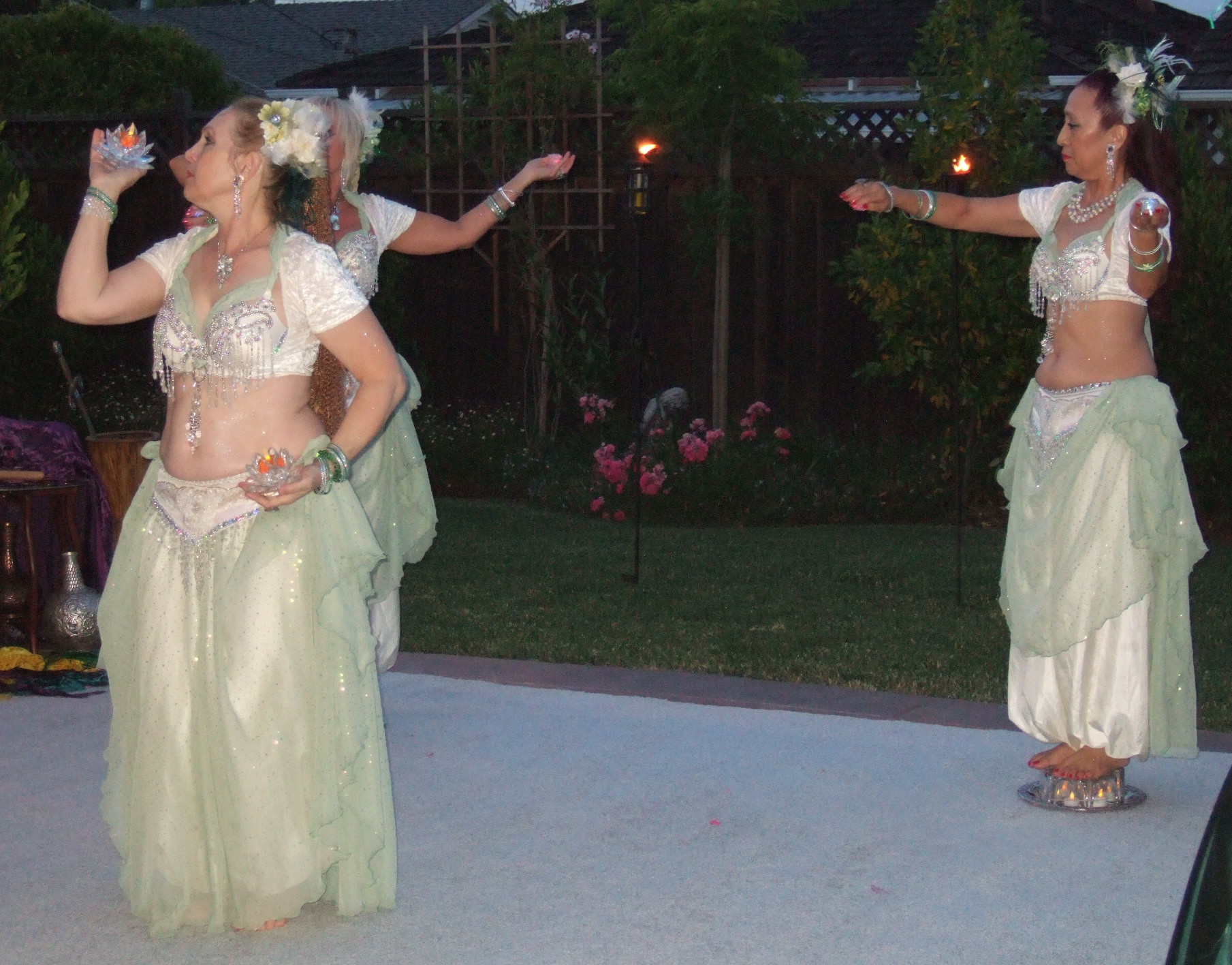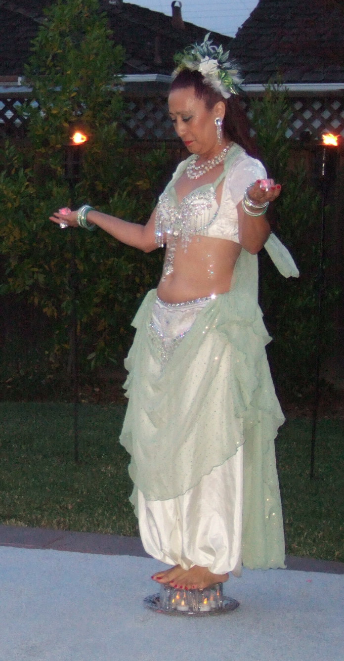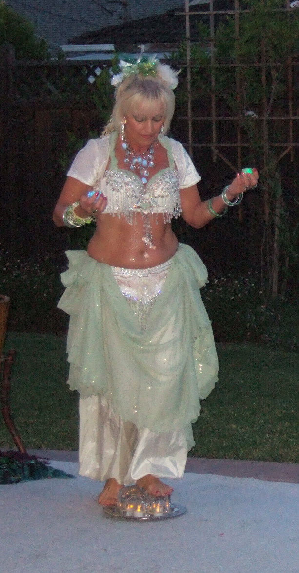 Also included in the package was dancing entertainment provided by Bahira and Indigenous performing a 20 minute set of dances that included sword, veil, candles and fan. The organizer had this to say about the performance: "...The belly dancers were beautiful in crystals and icy green; they looked like they should have had fairy wings, so magical they appeared. My favorite dance was when they had trays of candles and light cubes that they stood and danced on. "