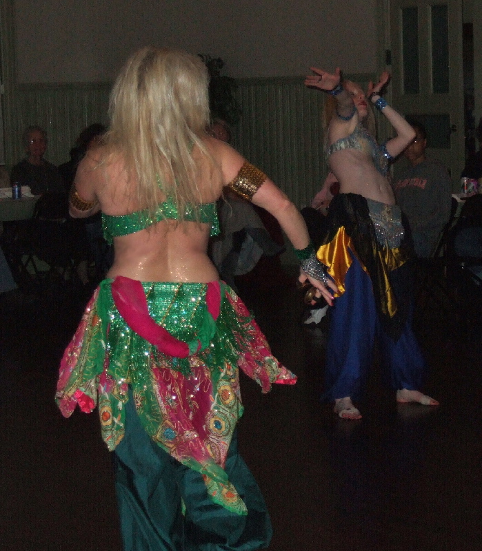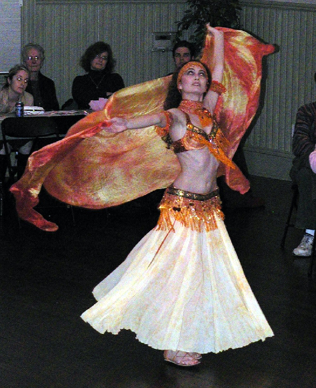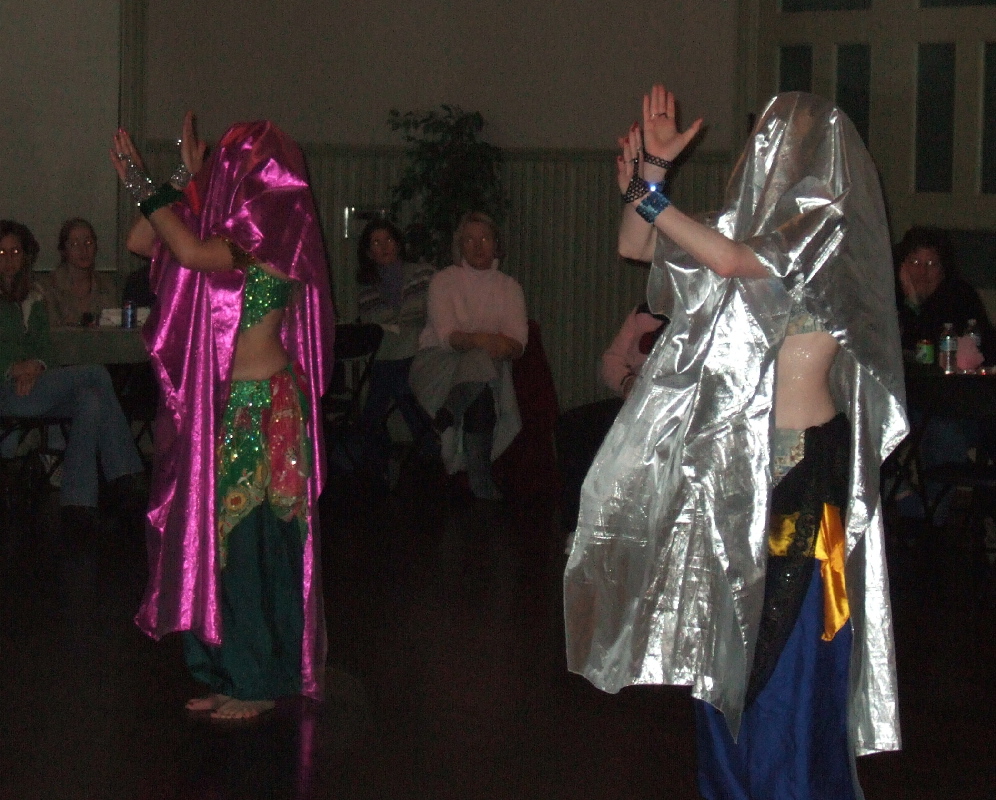 Shiva (fuchsia veil) and Sevanti (silver veil) performed together as "Fire & Ice" a dramatic and mysterious duet with veil and floor work.