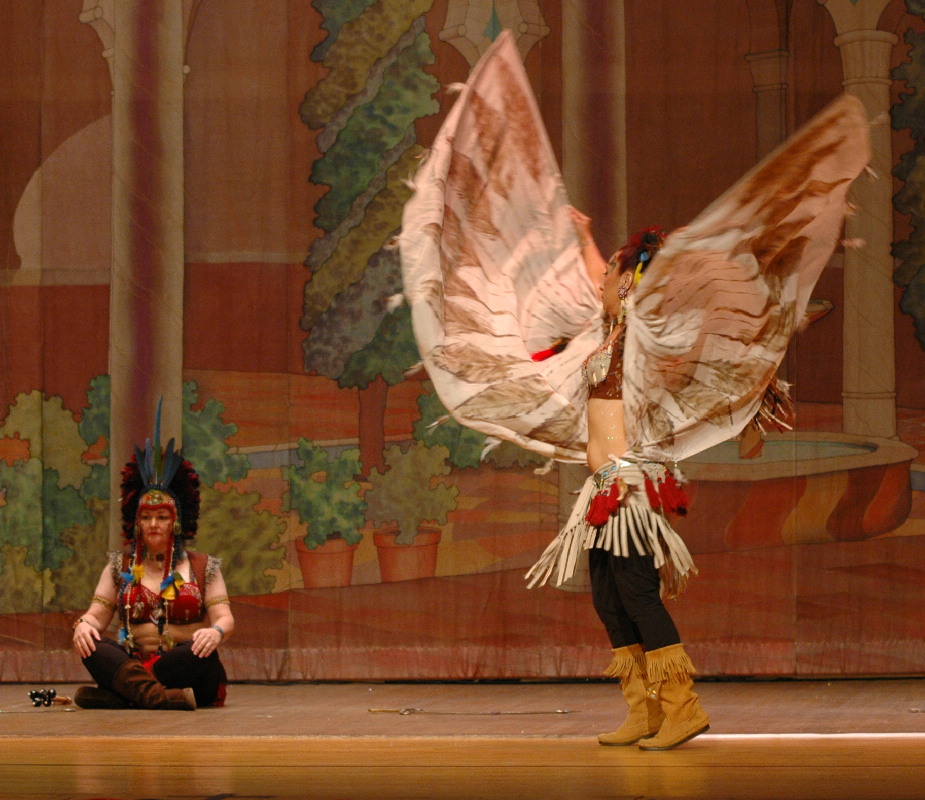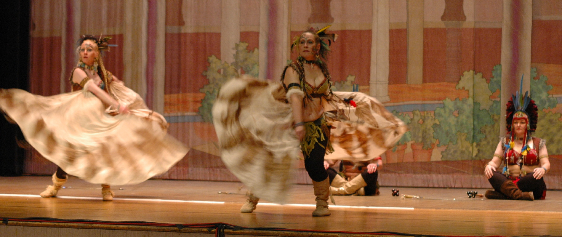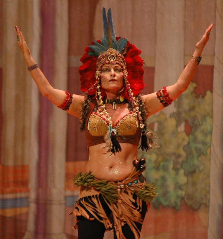 Indigenous performed at 7 PM Sunday on the Main Stage of the Richmond Memorial Auditorium at the close of Rakassah West in Richmond, California. Indigenous was proud to perform it's Mytho-Poetic suite of four Amer-Indian Belly Dances in its entirety.