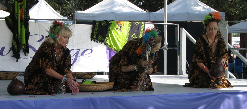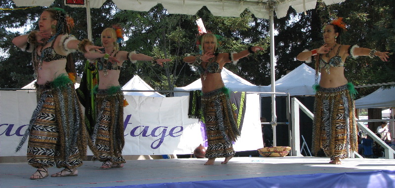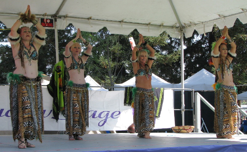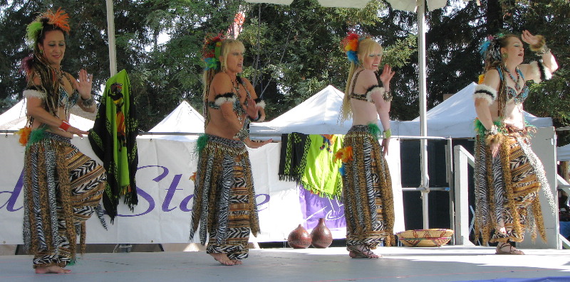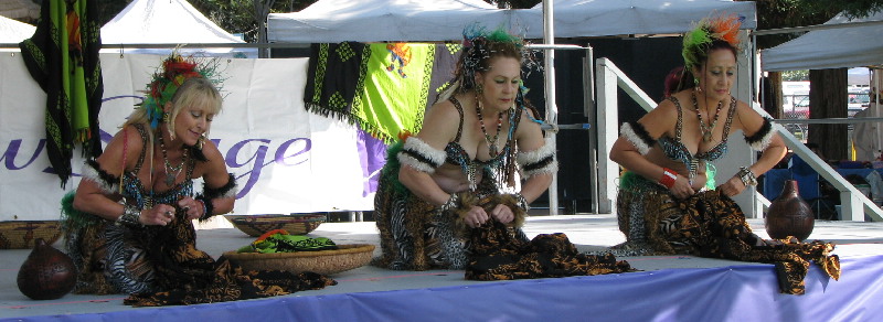 For the second year in a row, Indigenous was invited back to perform its Mytho-Poetic Dance on the Meadow Stage on Saturday morning, fusing World cultural myths, music and costuming to tell a story through dance. Indigenous performed a set of imaginary dances from the Afro-Brazilian cultures interwoven with Middle Eastern costuming and dance styling.